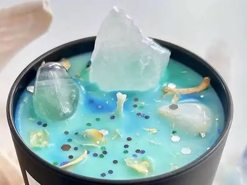 Ocean Moonlight Kristallkerze – Bergkristall, Fluorit & Mondstein